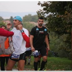 A Rezi vár után lent vált szét a két táv, mi Székely Petivel balra, 50-es barátaink jobbra. Petivel úgy beszéltük meg, hogy amíg jó lesz a közös tempó, addig futunk együtt. Kis családom minden frissítőnél ott várt lelkesen. Tavaly, amikor a másik irányba volt a pálya, Rezi vár és Rezi település között sötétedett rám, úgyhogy szinte az egész szakasz ismerős volt nekem. Azért volt változtatás néhol a tavalyihoz képest, könnyebb nem lett szerintem se, de szuper a most már véglegesnek mondott pálya. Minimális aszfalt, egy kevés pincesor, ami tök jó, különben szinte végig terep, nagyon sok az ösvény, amit imádok, sok a köves, gyökeres rész, sok nehezen futható emelkedő és lejtő van benne, izmos pálya, az biztos. Gratulálok a tervezőknek, ragyogó munka.