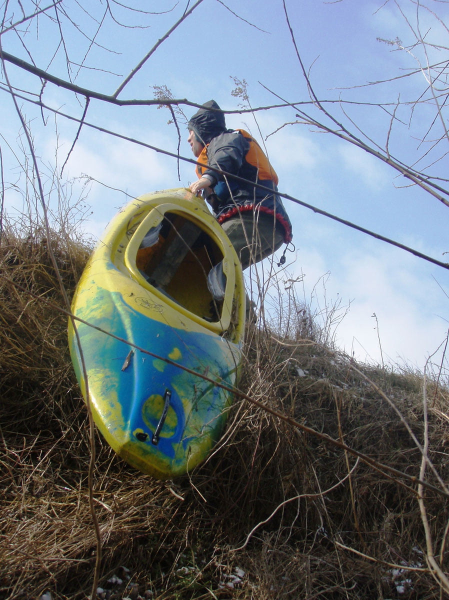 A nehéz haladás miatt meg is állapítottuk Krisztiánnal, hogy ez sokkal extrémebb, mint a hétvégi vadvízi kajakozásunk a méteres hóval borított part melletti folyón.