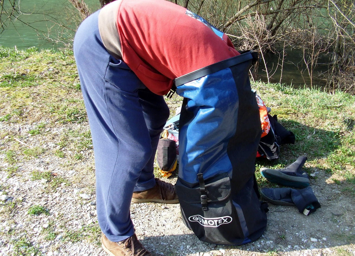 Az ötös hely alatti gátnál megreggeliztünk a savinja-i vérkutya társaságában, majd miután kiszabadítottam magam a vízhatlan zsákom rabságából átöltöztünk az evezésre.