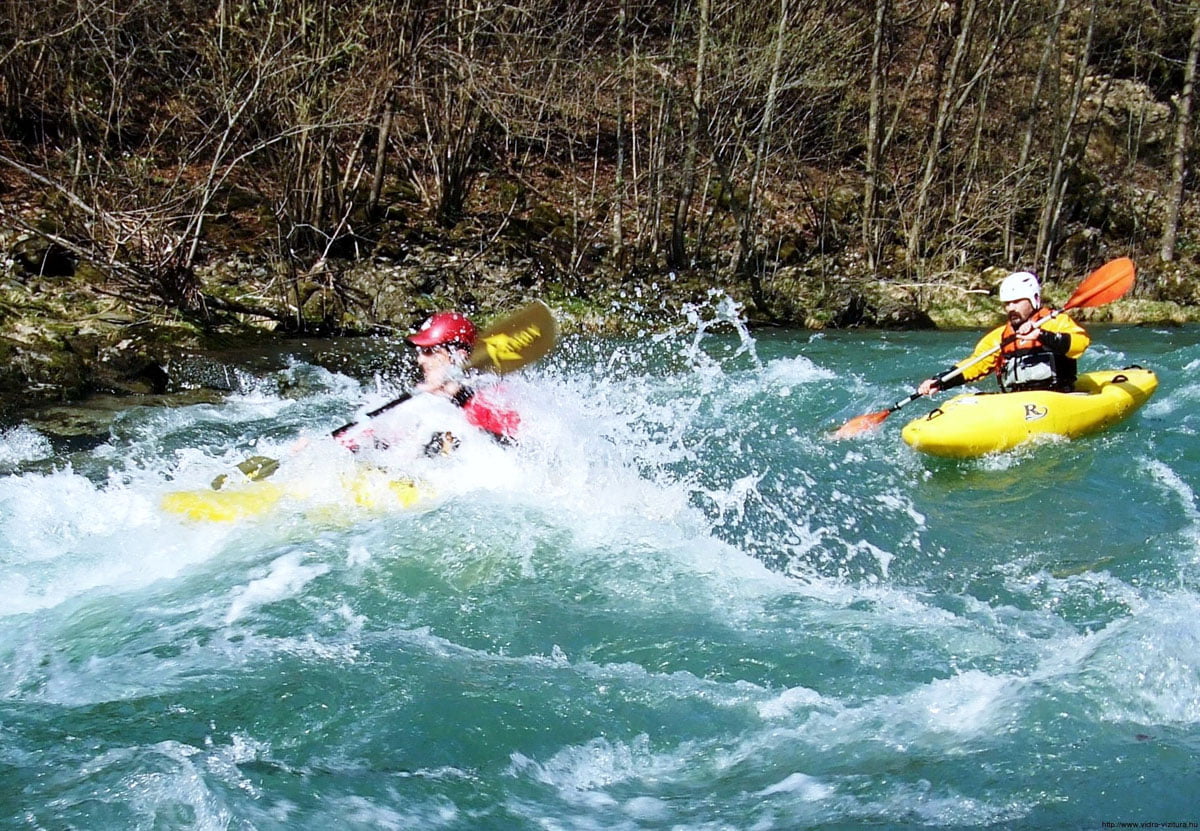 A szép tavaszi időjárásnak köszönhetően a környező folyókban mindenhol szép vízállással kényeztetett minket a természet, a Savinja vízállása Nazarje 107 cm volt. A közepes víz 100 cm, a HW 120 cm, úgyhogy ez tényleg jó víznek mondható. A Csárli az újdonsült Riot Sniper step creek kajakjával jött, én pedig a Wavesport EZG játékhajómmal.